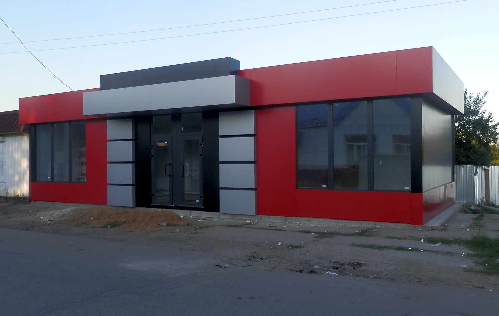 Результатом данного проекта стал павильон имеющий яркий красный дизайн и акцентную входную группу.